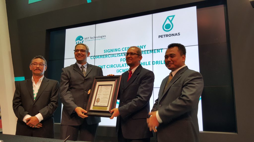 “We believe iCWD will up the game in drilling, as it offers improved well control and drilling economics,” said Hj Zakaria Kasah, Chairman of PETRONAS Technology Ventures Sdn Bhd (PTVSB), the technology commercialisation arm of PETRONAS at the signing of a Commercialisation Agreement between PTVSB and MIT Innovation Sdn Bhd, the R&D arm of the MIT Technologies group and the exclusive marketing partner of the iCWD on 23 March 2016. As production operations face greater challenges, and with geological uncertainties that lead to high drilling costs, reducing Non Productive Time (NPT) in drilling activities has become increasingly important. This is in line with an industry-wide programme driven by PETRONAS to support sustainability and strengthen the Malaysian oil and gas industry’s competitive advantage by optimising costs, increasing efficiency and driving innovation.